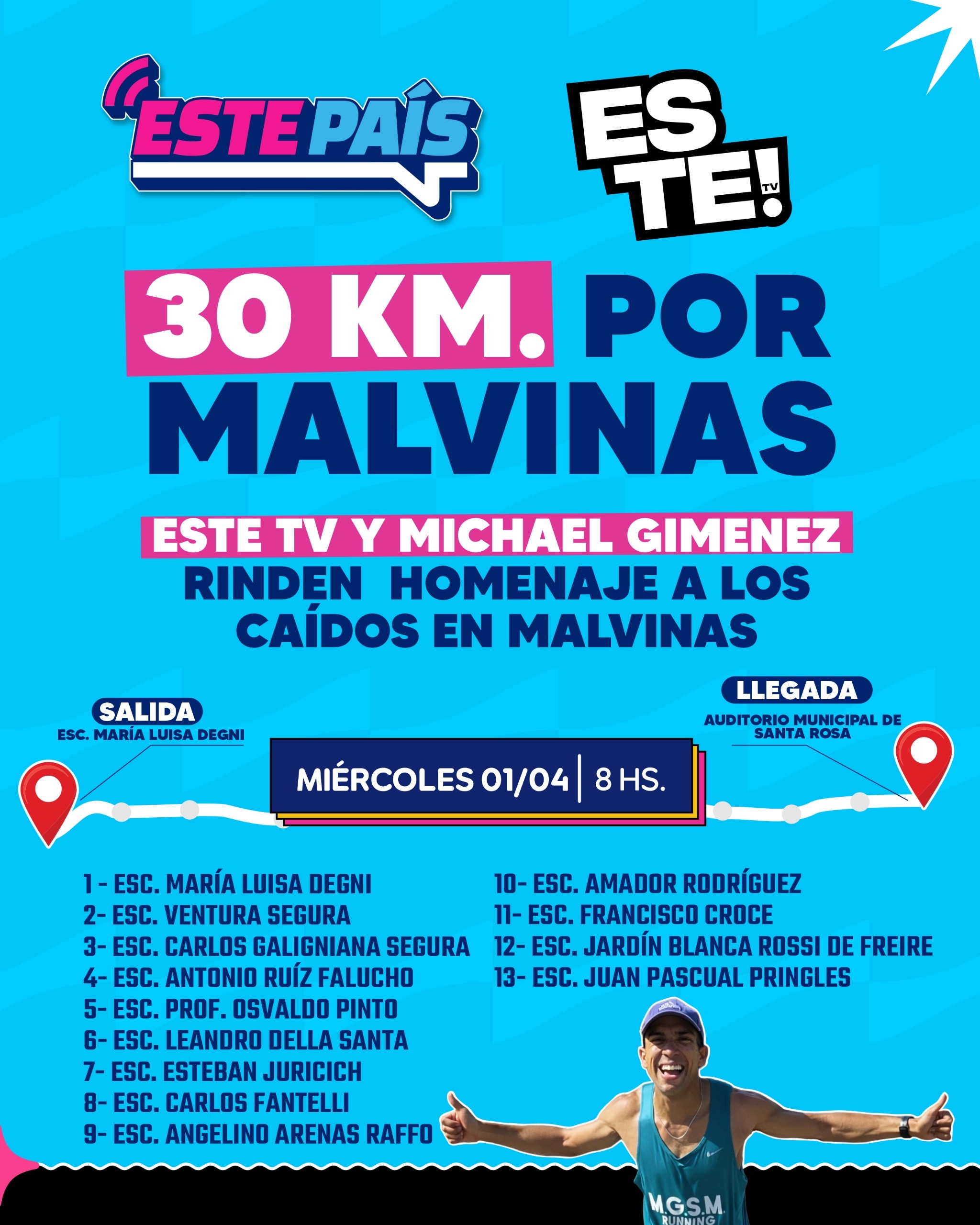 En el marco del 2 de abril, Día del Veterano y de los Caídos en la Guerra de Malvinas, el programa informativo “Este País”, perteneciente al canal Este TV, junto al reconocido cantante mendocino Michael Giménez, impulsan una propuesta inédita para el departamento: el desafío homenaje a los caídos en la guerra, “30 KM por Malvinas”.